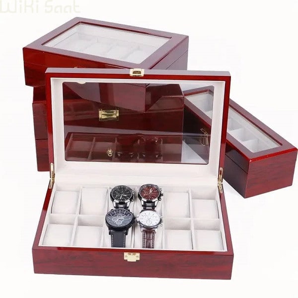 درب شیشه ای: در عین حال که این جعبه زیبا از ساعت ها و جواهرات شما در برابر گرد و غبار و خط و خش محافظت می کن ، دیدی کافی را به شما ارائه می دهد . هر زمان که خواستید ساعت هایتان را نگاه کنید بدون باز کردن ، دید کافی خواهید داشت