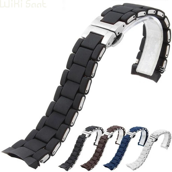 جنس: ساخته شده از ترکیبی از سیلیکون و استیل ضد زنگ. “بند ساعت استیل با روکش لاستیکی سیلیکونی”