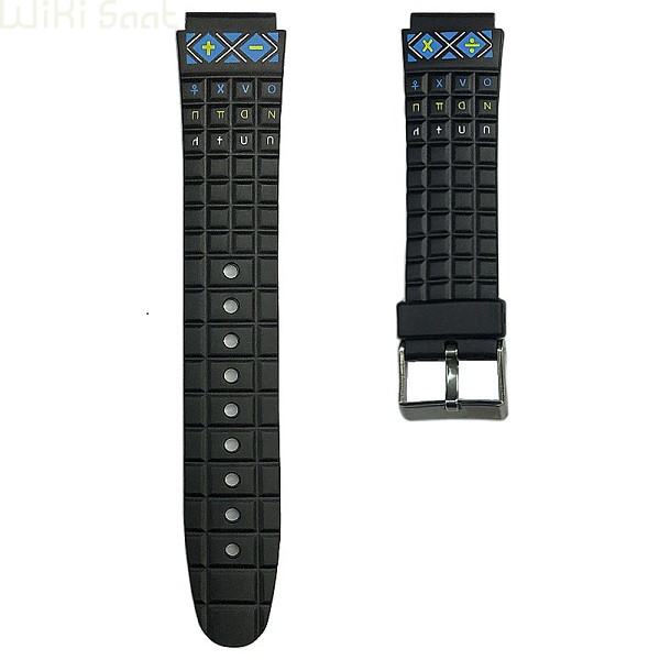 نشانههایی که روی قسمت بالای بند میبینید، درواقع نمادهای کلیدهای ماشینحساب کاسیو هستند.