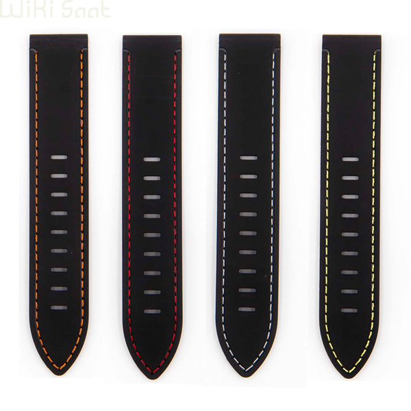 بند ساعت سیلیکونی با دوخت، ترکیب جدیدی است که در رنگ های (دوخت) سفید، قرمز، زرد و نارنجی عرضه شده است و برای ساعت هایی که سایز بند آنها 22 میلیمتر است مناسب می باشد.